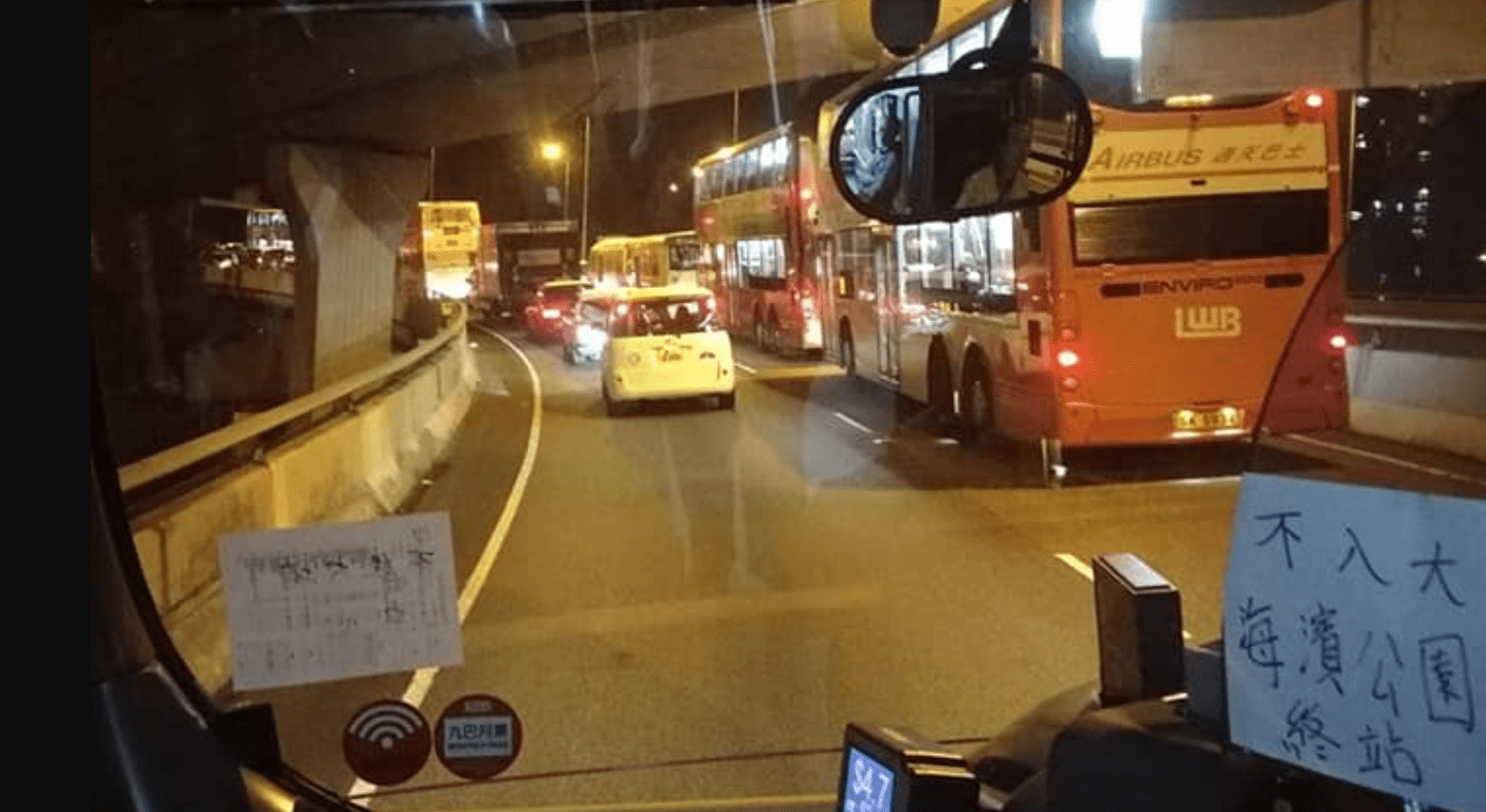 I hear another passenger say Tolo Highway has probably been closed—don’t know if that is true. It true, we’re stuffed though. Getting home soon seems like an illusion.
